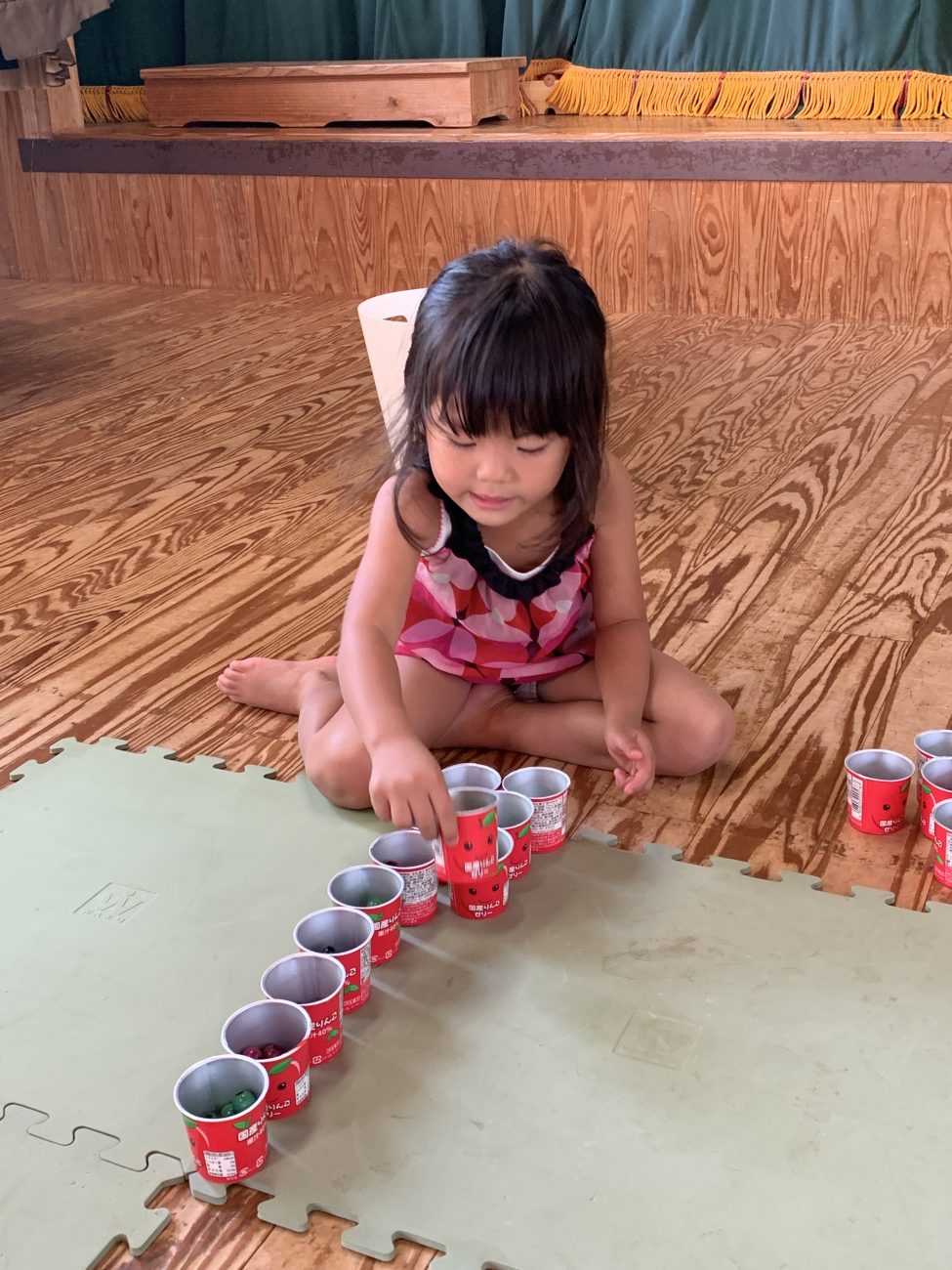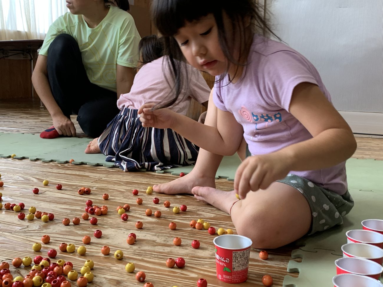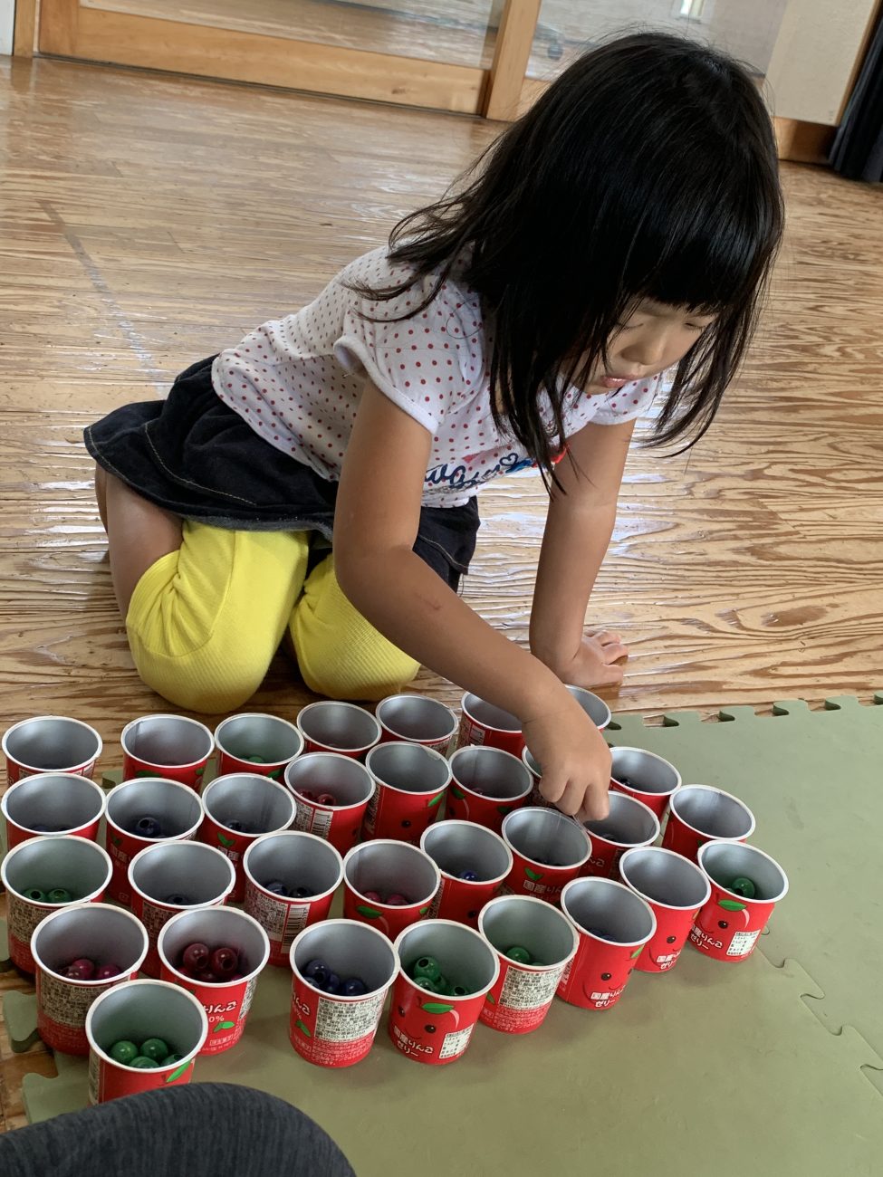 大事に並べた果物(ビーズ)が入ったカップがどんどん並んでいく様子を見て、
