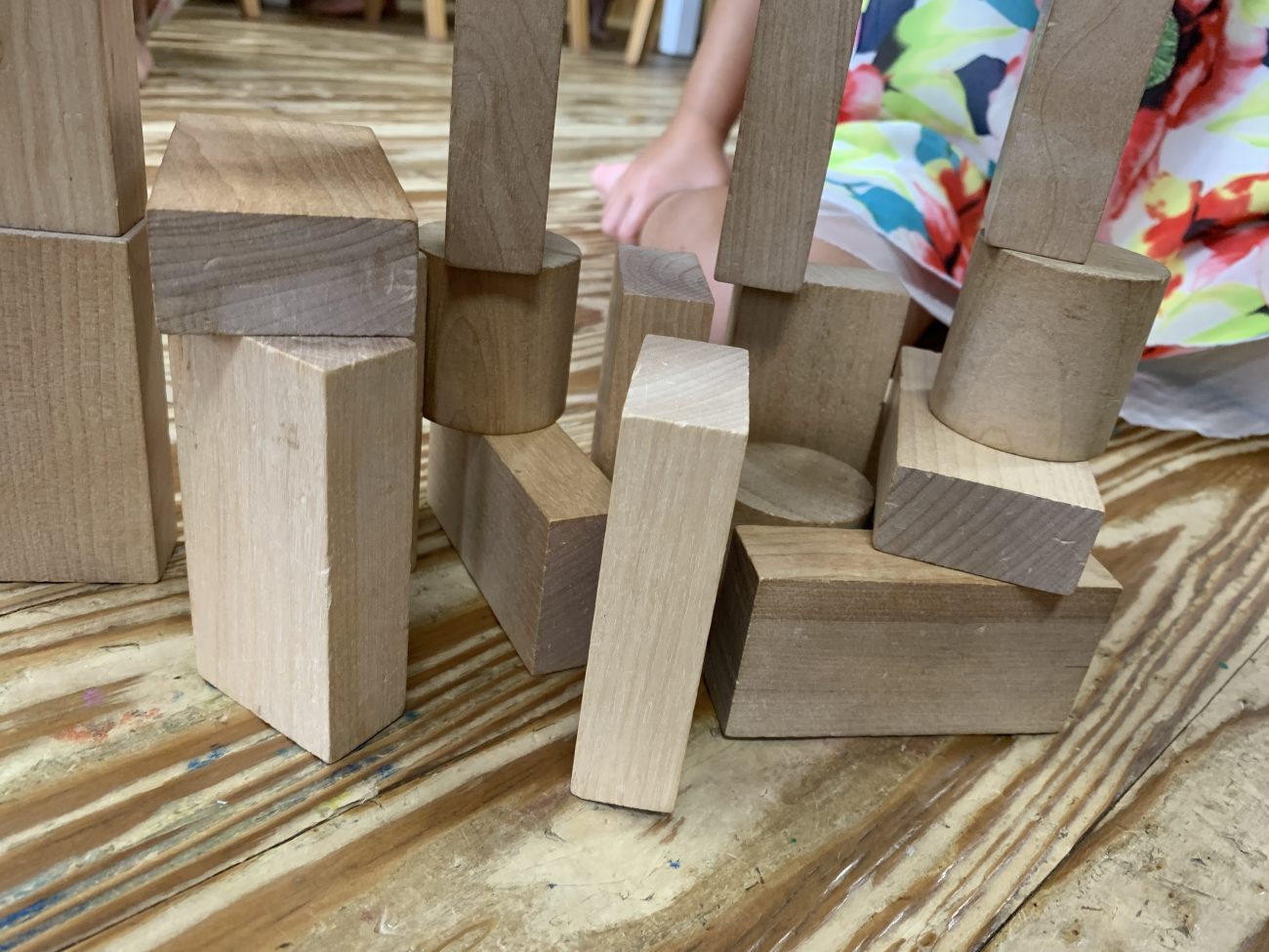積木遊びでは、様々な積木の重ね方を見る事ができます。子ども達が考えた重ね方を2つご紹介します。