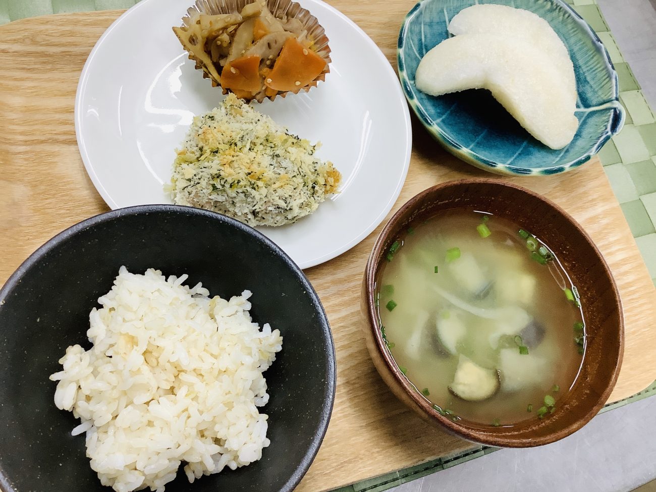 今日のメニューは“鶏肉の香りパン粉焼き”“れんこんのきんぴら”“秋ナスのみそ汁”でした。