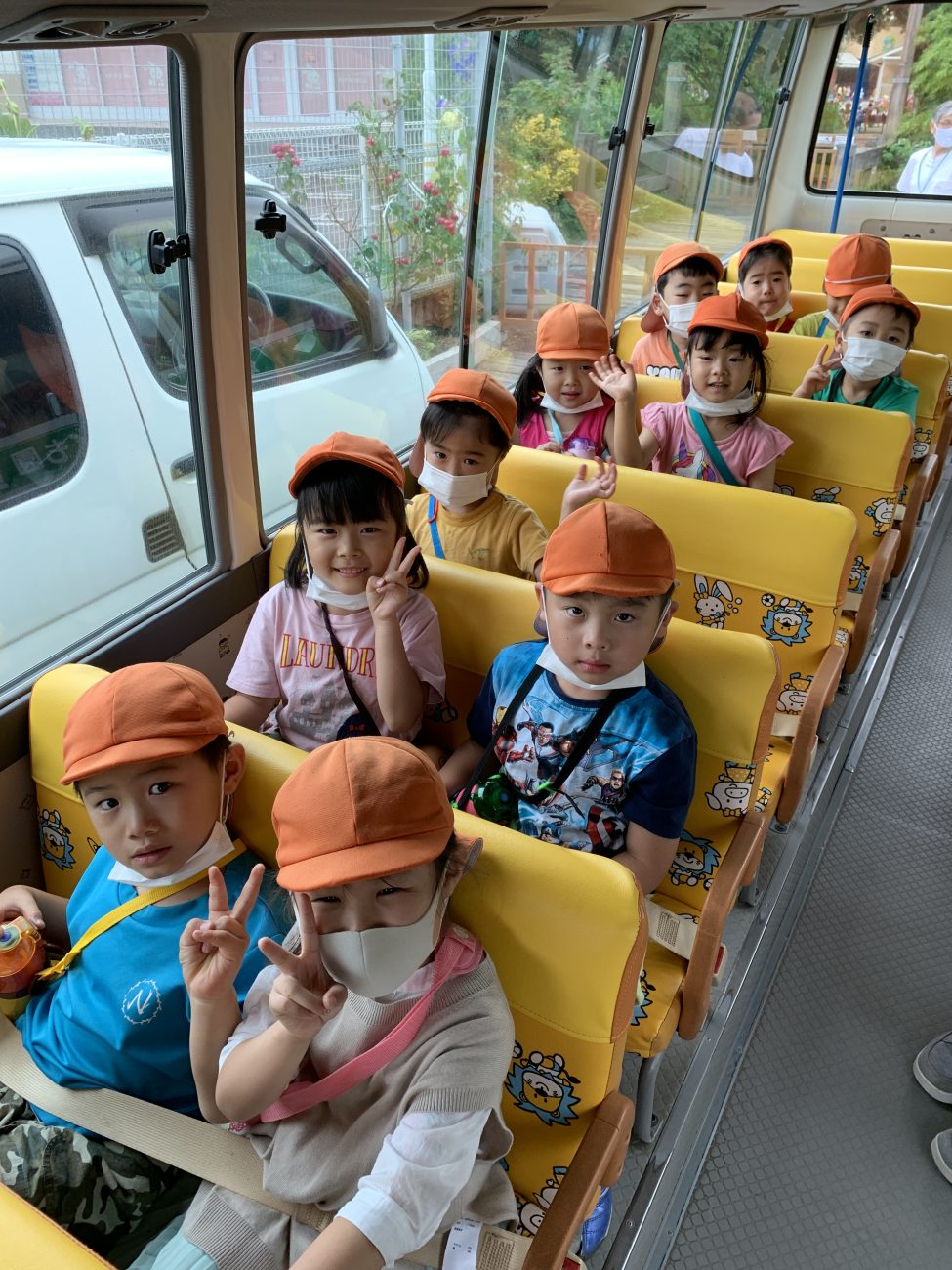 こども園の送迎バスでの移動では、子どもたちもウキウキ、ワクワクしている姿がありました。