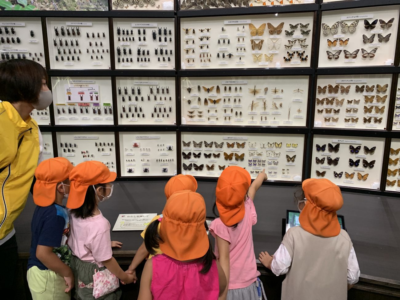 博物館の中に入ると、子どもたちの好きな虫が標本となり飾られていました。