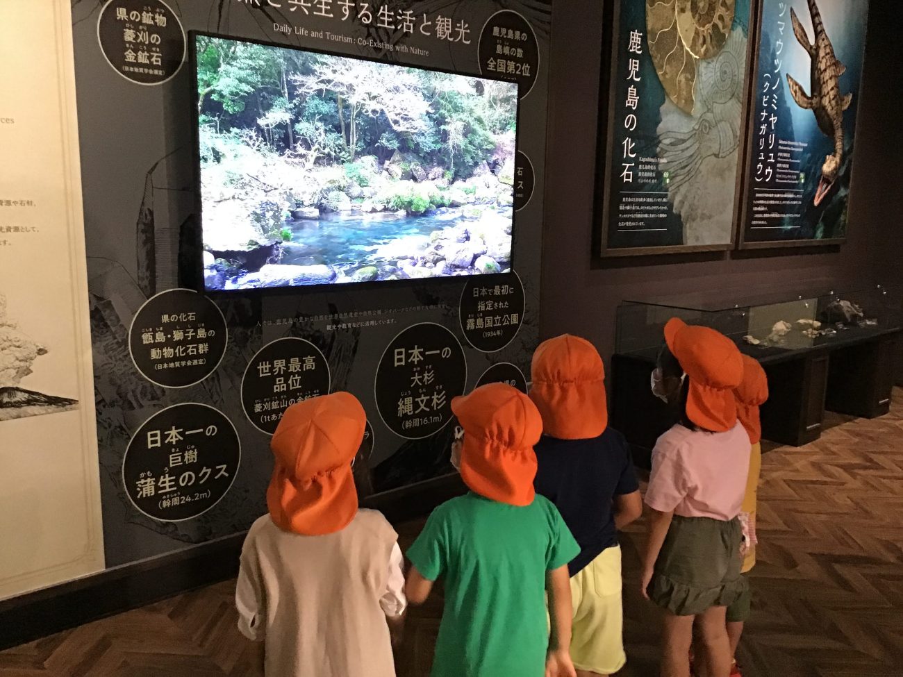 生き物の骨を実際に見たり、桜島の火山についての動画をみたり、繰り返し見て周るなど子どもたちも興味津々。