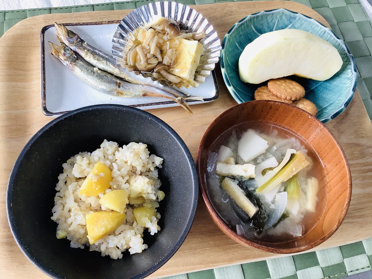 今日のメニューは“栗ごはん”“ししゃもの塩焼き”“豆腐のきのこあんかけ”“小松菜のみそ汁”でした。