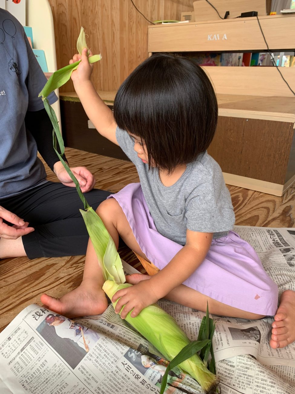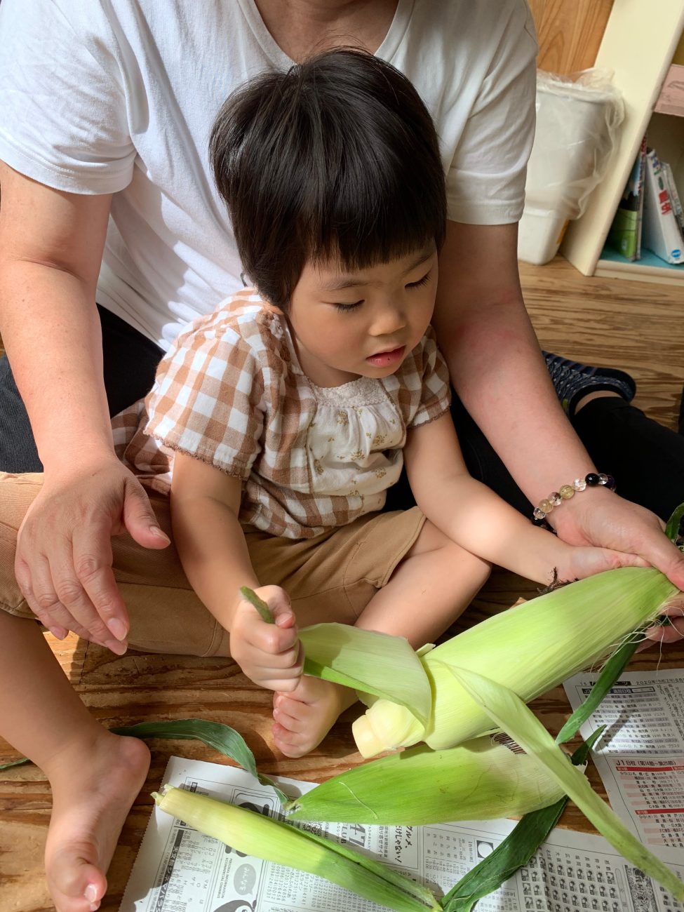 試食の時もみんな美味しそうに食べていて、Rくんは普段あまりとうもろこしを食べようとしないのですがその日ばかりは完食していて、やっぱり自分で皮をむき茹でる過程を見たことで食べれたのではないかと思いました。