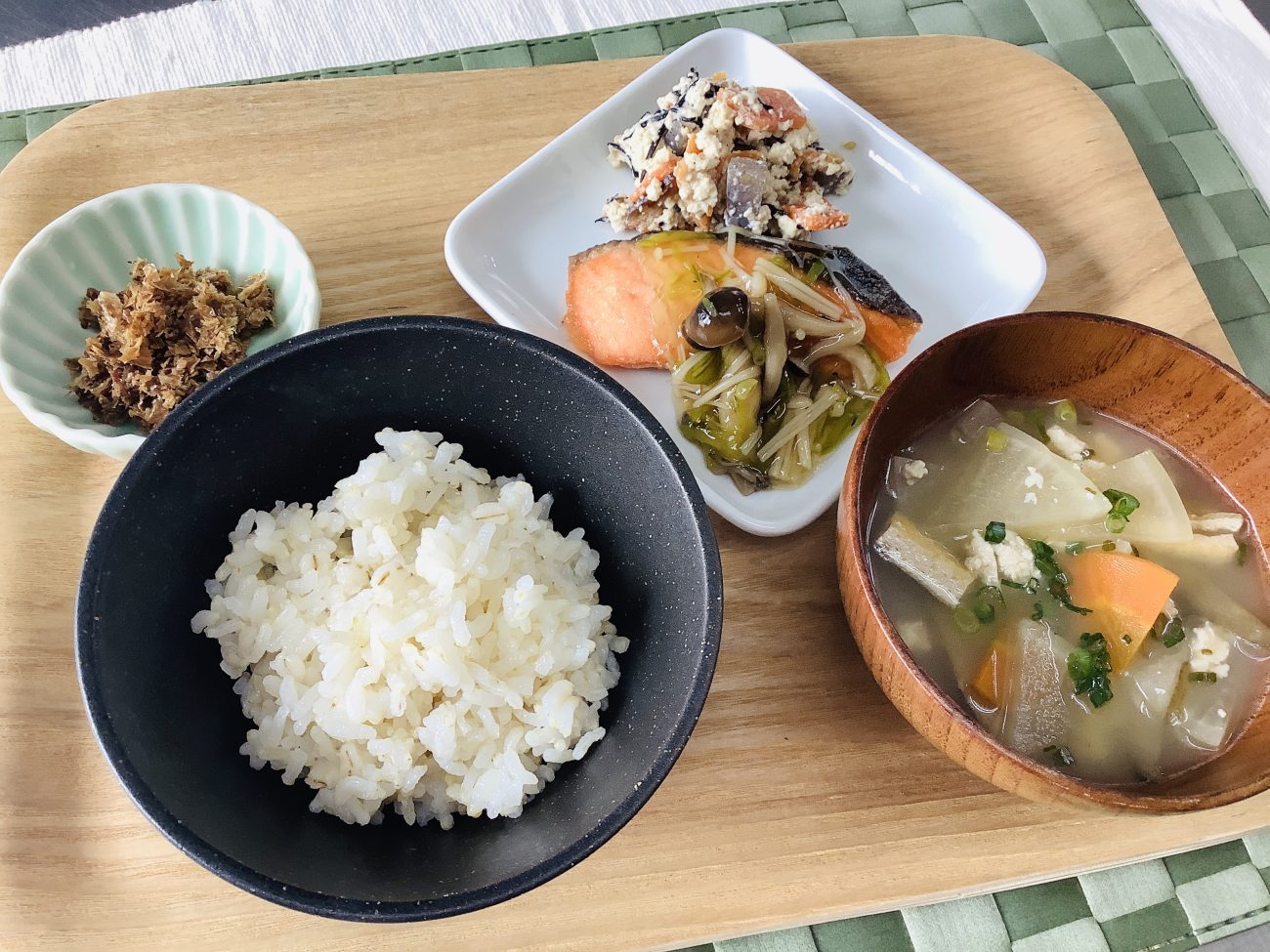 今日のメニューは“秋鮭のきのこあんかけ”“ひじきの白和え”“けんちん汁”でした。