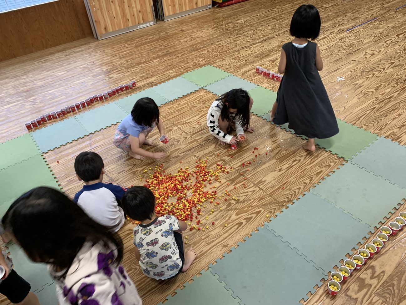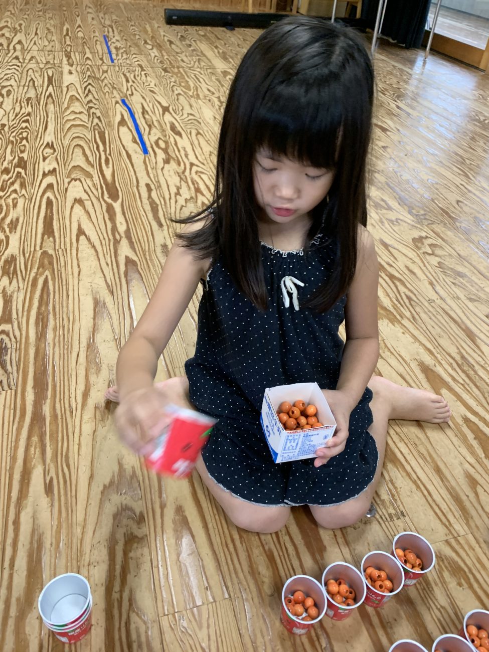 もも組の子ども達同様、楽しみながら、なおかつ確実に、10粒ずつビーズを集める姿がみられました。