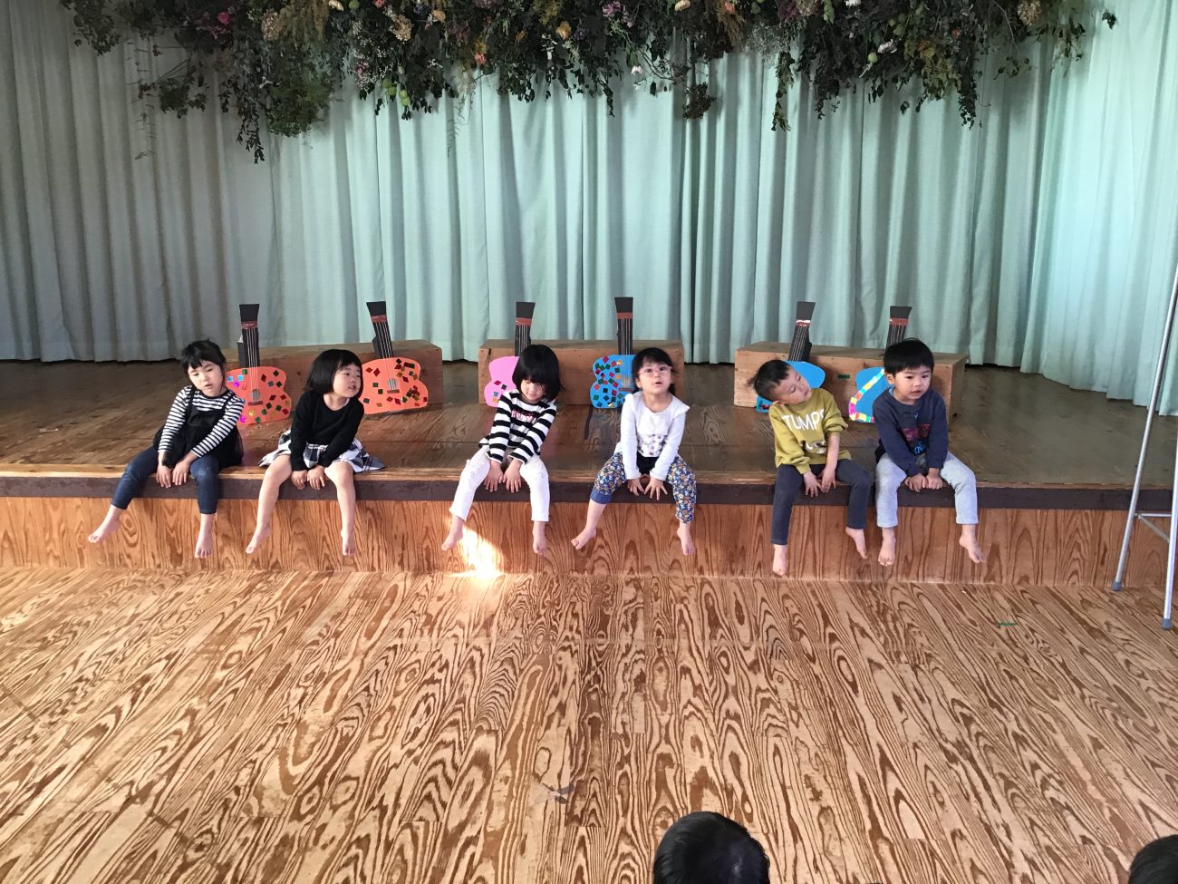 やはり、舞台発表を選んでも誰かに見られると”恥ずかしい…”という気持ちがあるようで固まってしまう子もいました。なので、今回私たち保育士は、歌う事だけを子ども達の表現と捉えず、“曲を聴いて楽しい気持ちで体を揺らすこと”“舞台に立つこと”を子ども達の表現と捉えました。子ども達にも毎回「楽しんでね」と一言声かけをする事で、恥ずかしがり屋だった子ども達が舞台に立ち、曲を聴きながら楽しんで表現できるようになりました。この姿を見て、私は大きな成長を感じたと共に嬉しくなりました。