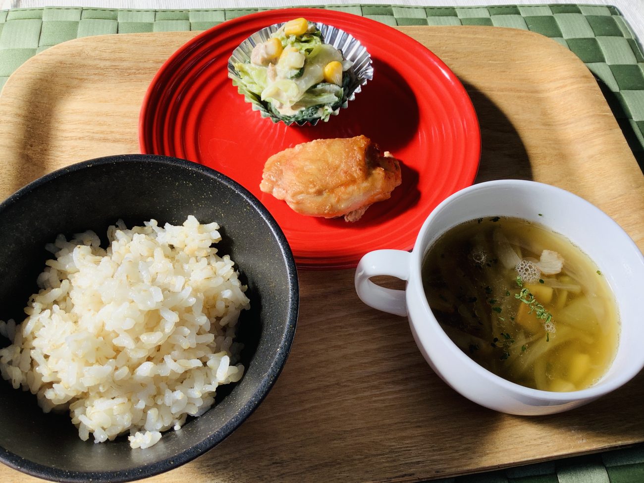 今日のメニューは“タンドリーチキン”“コールスローサラダ”“レンズ豆のスープ”でした。